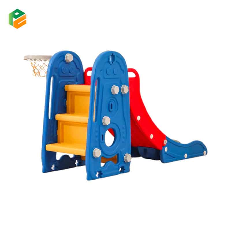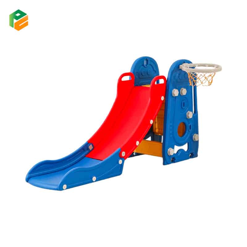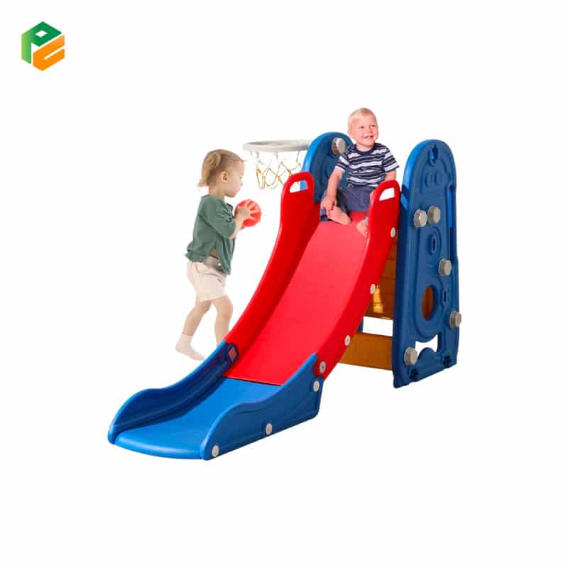 Combining the climber,slide,basketball shooting,hand cart in one playset can offer a diverse range of play opportunities that can be both fun and beneficial It can promote brain motor development, and babies who frequently play on slides tend to have good balance abilities. Good balance is the foundation of motor skills. The toddler slide is made of HDPE material, BPA free. Smooth surface without sharp corners and burrs, which will not harm the skin of toddlersLet your child have a carefree and healthy play.