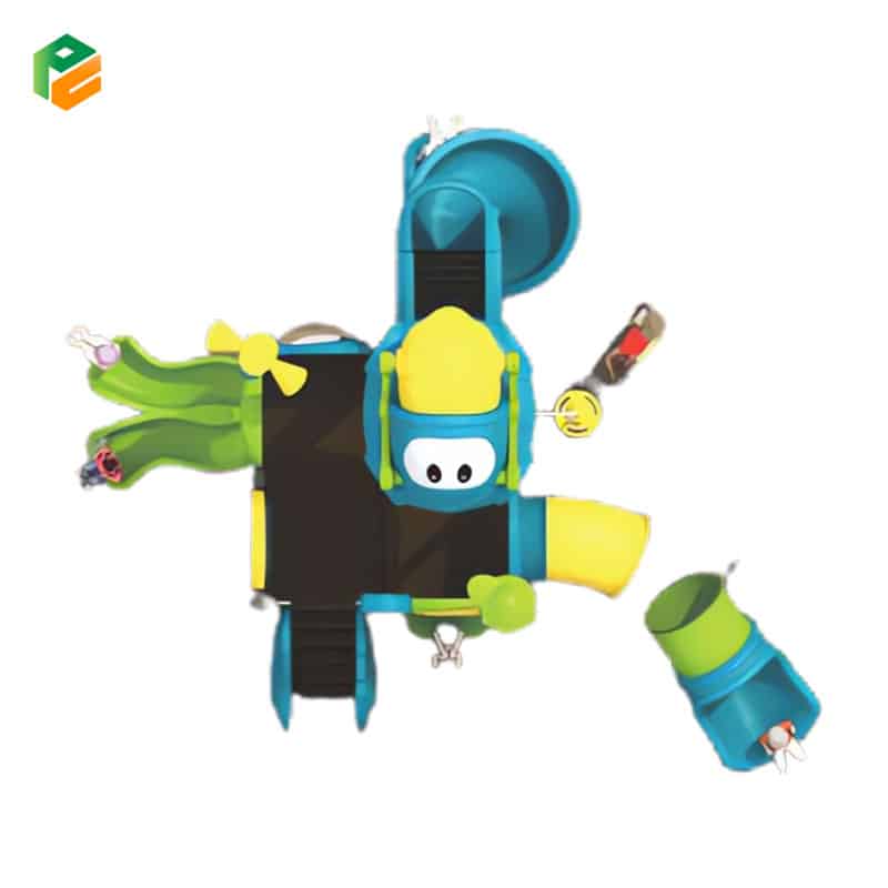 This appealing nursery outdoor play equipment with a car-shaped roof offers children a thrilling and imaginative play experience. This multifunctional structure features a tunnel slide for adventurous explorations, a spiral slide for exciting twists and turns, and a double slide for social play and friendly races. Its vibrant colors and creative design make it a perfect addition to any outdoor play area, ensuring endless hours of fun and active play for young children.
