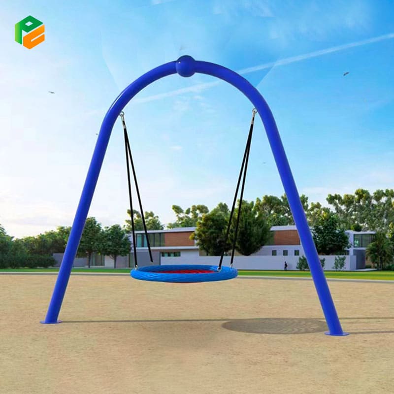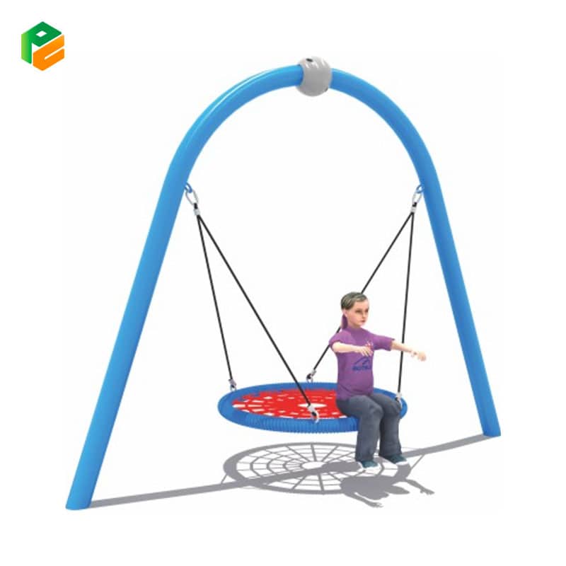 This arcuate outdoor swing for children is a delightful addition to any playground or backyard. Crafted with a sturdy galvanized steel pipe structure, it ensures durability and safety during playtime. The single-person seat, resembling a bird’s nest and made of durable rope, offers a cozy and unique swinging experience. Perfect for outdoor enjoyment, this swing combines sturdy construction with whimsical design, providing children with endless fun and excitement as they soar through the air.