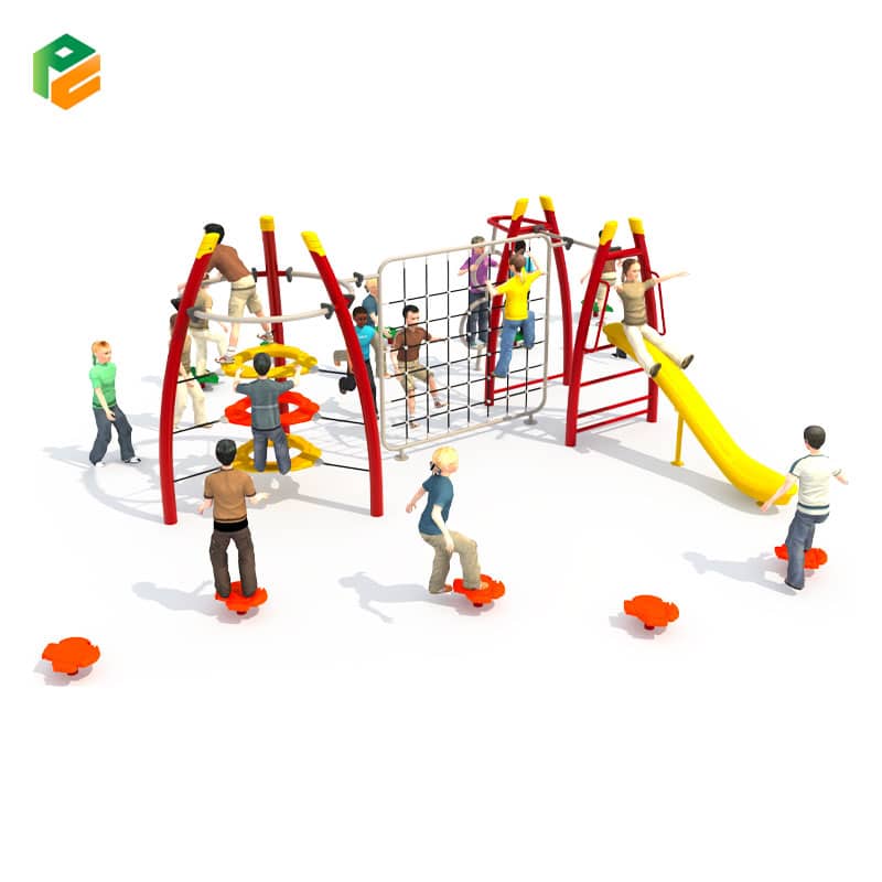 | Primary Materials | Heavy-duty 114mm or 89mm powder-coated Galvanized Steel support pipes, steel-core nylon climbing rope (vandal-resistant), food-grade LLDPE (Linear Low-Density Polyethylene) plastic components, and stainless steel hardware |