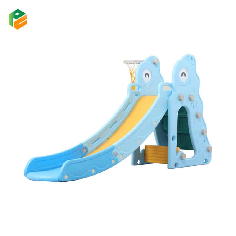 This versatile play set combines a fun slide and a built-in basketball stand, providing hours of entertainment and physical activity for children. Made from durable, high-density polyethylene, it is sturdy, safe, and designed for indoor use. The compact design makes it ideal for small spaces, while its smooth surfaces ensure a safe and comfortable play experience. Perfect for encouraging active play, developing coordination, and promoting motor skills, this 2-in-1 set is a great addition to any home or playroom.