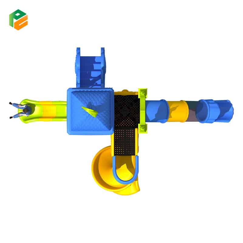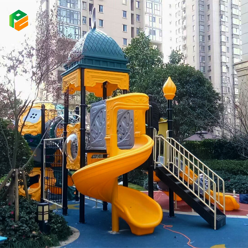 The exotic-style daycare outdoor play equipment offers a unique and engaging play experience. It includes a tunnel slide for an element of adventure, a spiral slide for thrilling descents, and a single slide for a gentler ride. This one-of-a-kind design adds a touch of excitement and intrigue to the outdoor play area, making it a captivating choice for children in daycare settings.