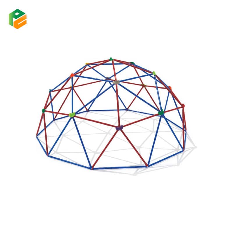 Introducing the galvanized steel geo dome climber, the ultimate adventure hub for kids! This sturdy and durable structure offers endless opportunities for exploration and active play. With its geometric design and galvanized steel construction, it provides a safe and secure environment for children to climb, hang, and conquer new challenges. Whether they’re scaling the bars, navigating the intricate web of steel, or simply hanging out with friends, kids can build strength, coordination, and confidence while having a blast outdoors. Supervised by attentive caregivers, the geo dome climber inspires imagination and fosters physical development, making it the perfect addition to any playground or backyard.