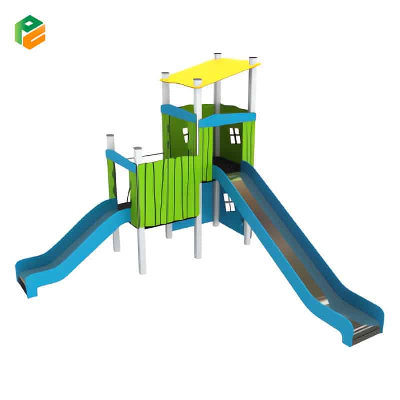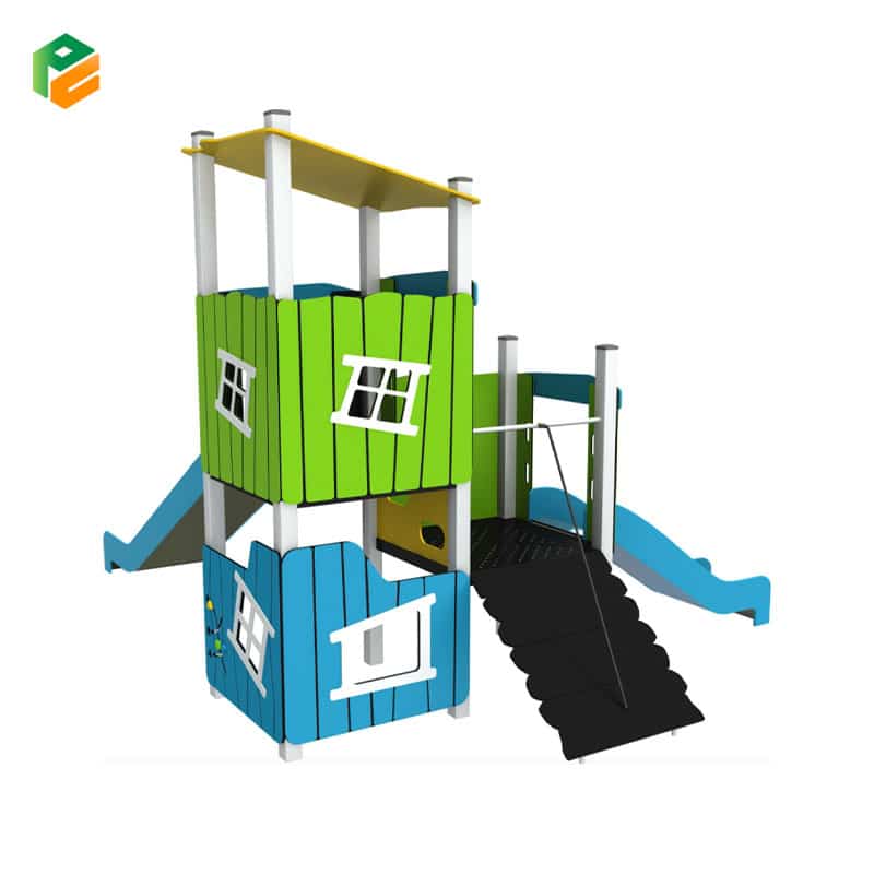 Elevate outdoor playtime with our Two-Floor Playhouse featuring an attached Slide. The main structure, crafted from durable HDPE board and galvanized steel pipes, ensures safety and durability. This charming playhouse design encourages imaginative play and exploration, while the dual floors and slide add an extra dimension of fun. With corrosion-resistant steel and easily maintainable HDPE, this Outdoor Playhouse with Slide promises a lasting and delightful play experience for children to enjoy in the great outdoors.