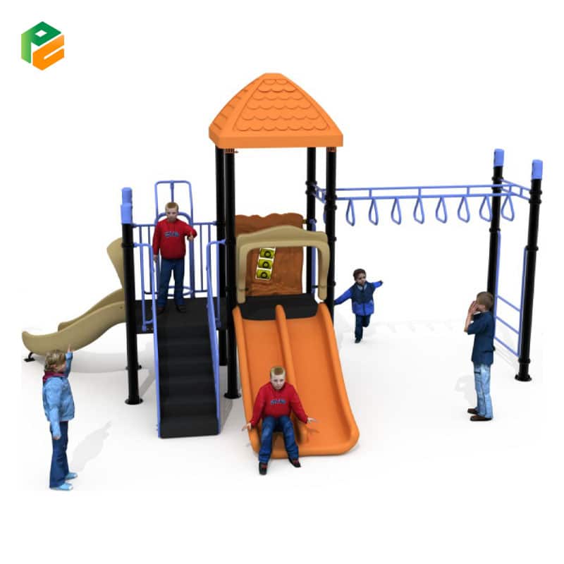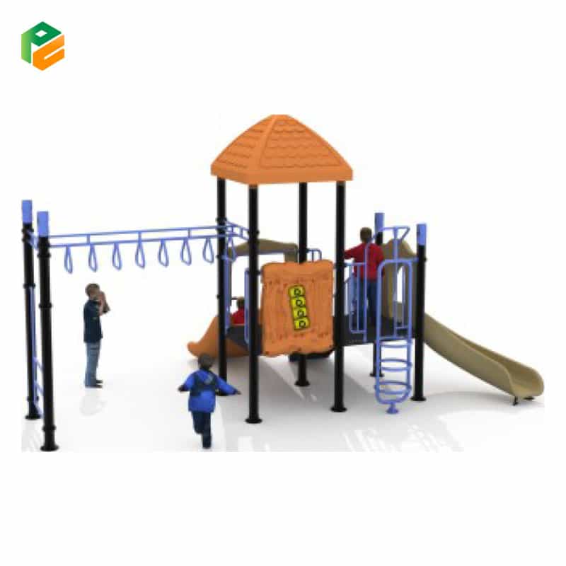 The high-quality outdoor playground is an exceptional play area that combines fun and durability. It features a set of monkey bars for physical development and upper body strength, a double slide for exciting races, and a single slide for individual enjoyment. This playground provides a safe and engaging space for children to have hours of active play and adventure in the great outdoors, all while ensuring long-lasting quality and entertainment.