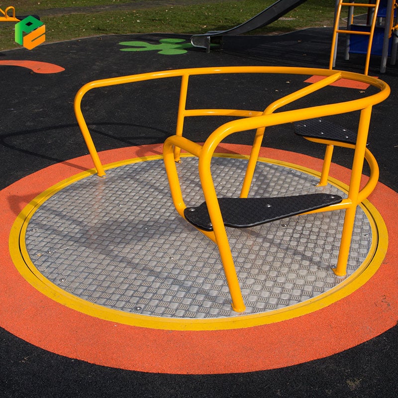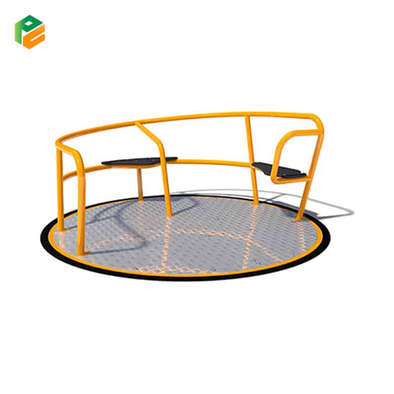 Large-diameter flush-mount rotating platform; Two integrated triangular side seats; Full-perimeter safety handrails with entry/exit gaps; Heavy-duty central bearing assembly |