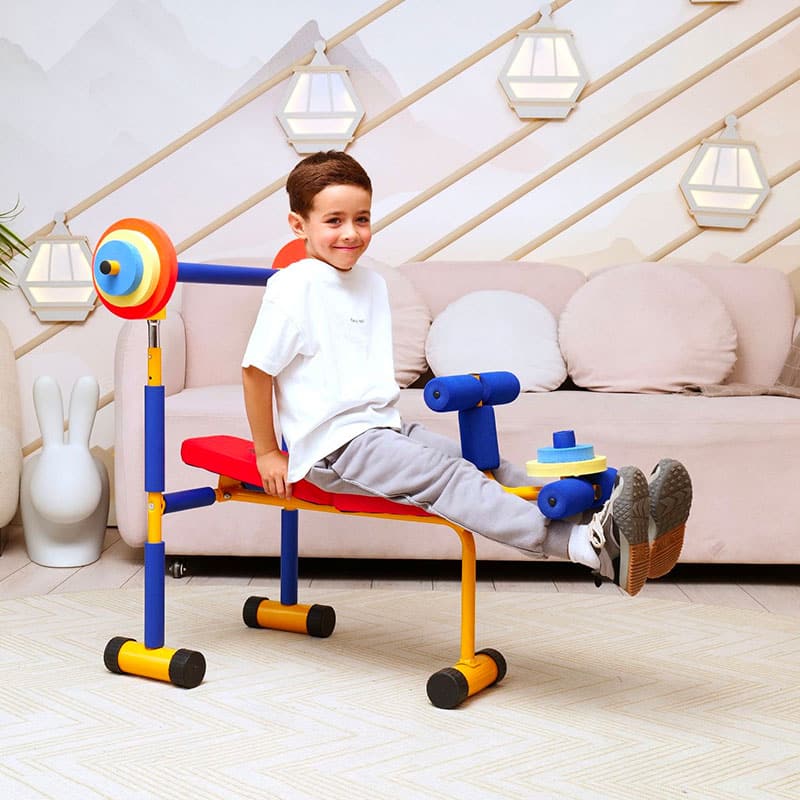 The Kids Weight Bench with Barbell is designed to inspire a healthy and active lifestyle for children. This versatile fitness bench allows young users to perform age-appropriate weightlifting exercises, including bench presses, leg curls, and leg lifts, using weights tailored to their size and strength. These three fundamental exercises help build a solid foundation for a well-rounded fitness routine, encouraging strength, coordination, and confidence in a safe and supportive environment.