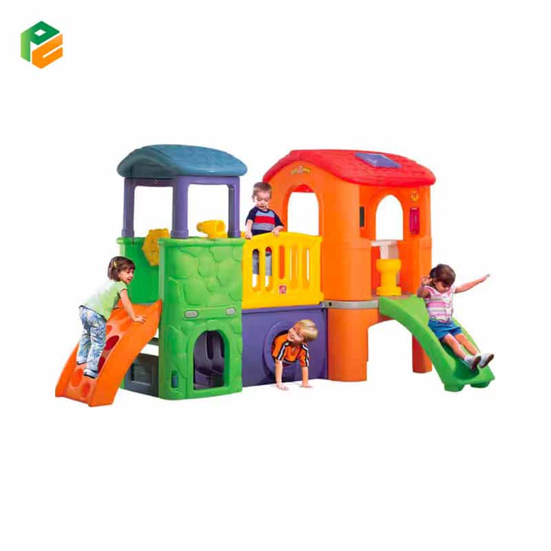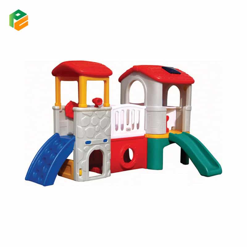 Kids Indoor Plastic Twin Tower Slide with Bridge