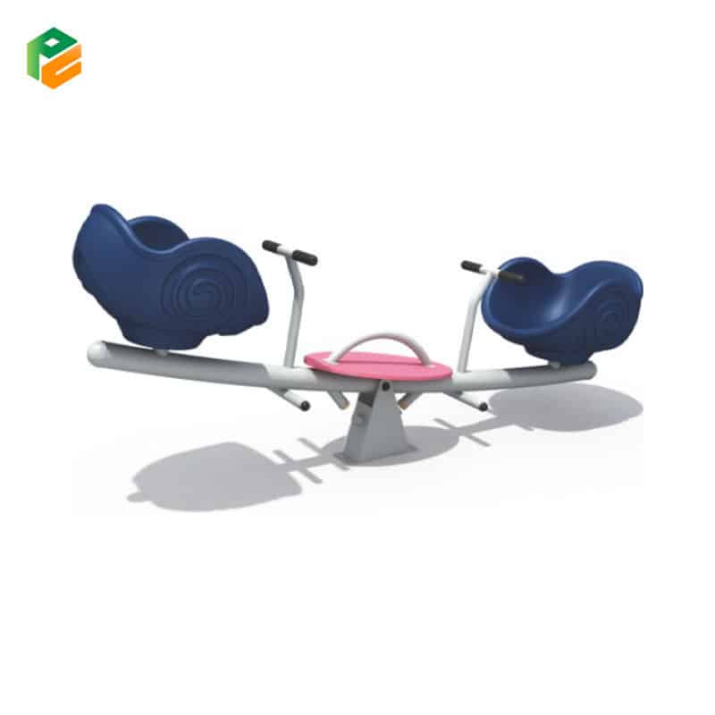 Introducing our preschool-friendly seesaw, designed with both safety and fun in mind! This seesaw features a sturdy supportive structure crafted from galvanized steel pipe, ensuring durability and stability for energetic little ones. The hand grips are thoughtfully designed with rubber for comfortable grasping, allowing kids to hold on securely as they play. What sets this seesaw apart is its whimsical snail shell seats, made from LLDPE, providing a unique and engaging experience for children as they rock back and forth. Perfect for encouraging balance, coordination, and endless giggles, this seesaw is an ideal addition to any preschool playground.