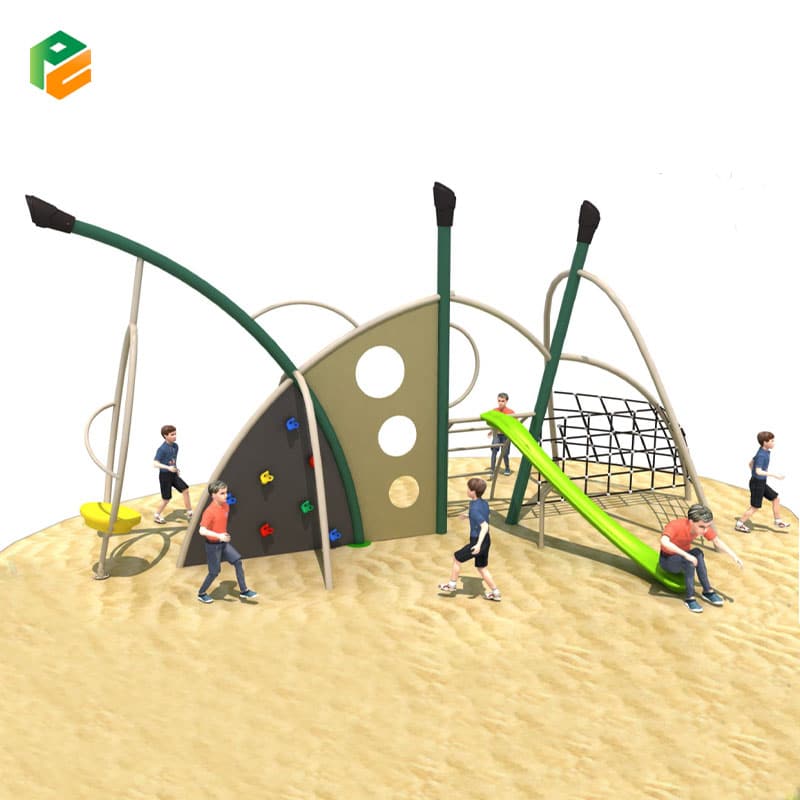 | Primary Materials | Heavy-duty 114mm or 89mm powder-coated Galvanized Steel support pipes, steel-core nylon climbing rope (vandal-resistant), food-grade LLDPE (Linear Low-Density Polyethylene) plastic components, and stainless steel hardware |