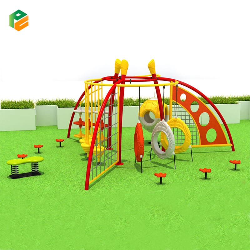 | Primary Materials | Heavy-duty 114mm or 89mm powder-coated Galvanized Steel support pipes, steel-core nylon climbing rope (vandal-resistant), food-grade LLDPE (Linear Low-Density Polyethylene) plastic components, and stainless steel hardware |