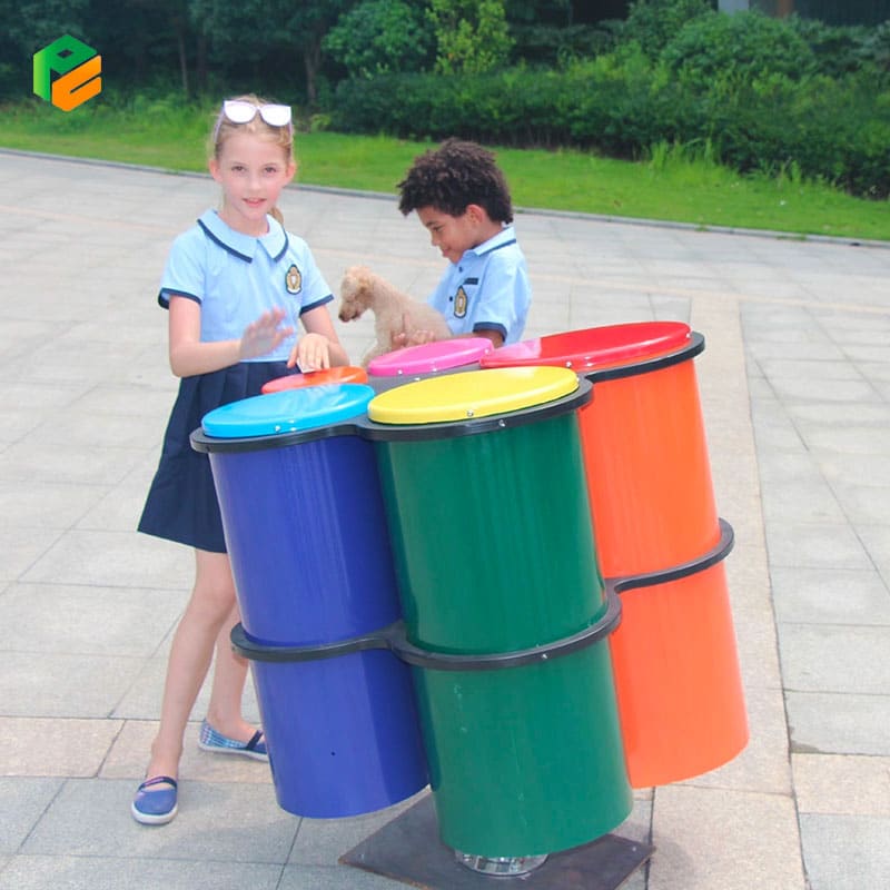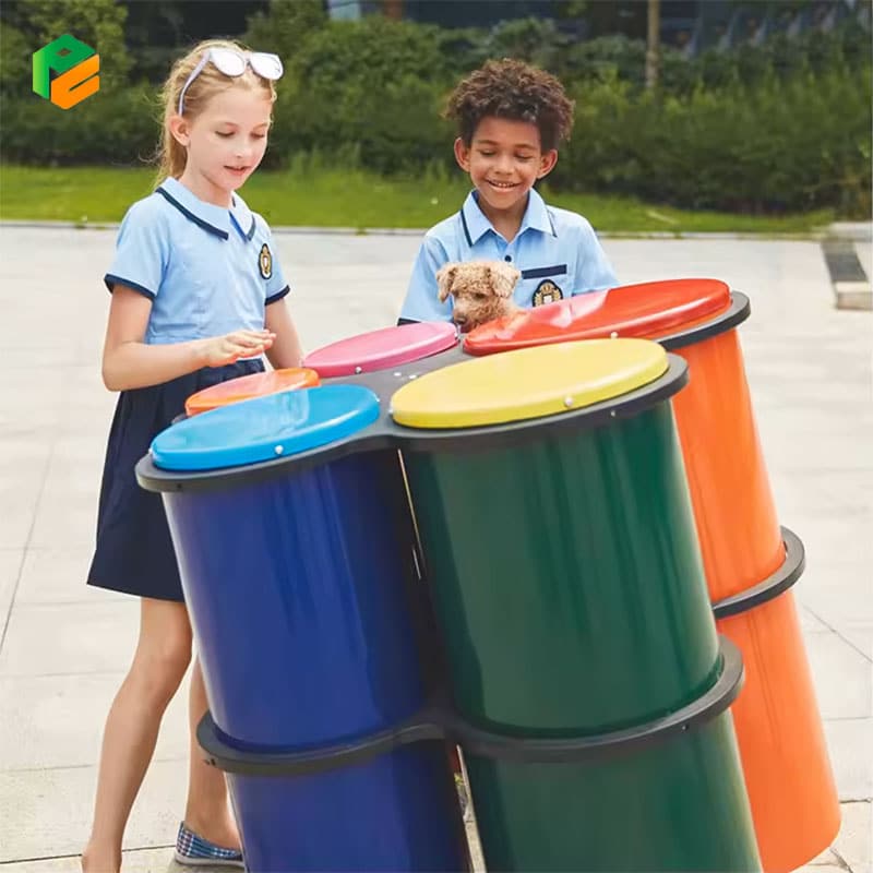 These distinctive outdoor drums, known for their exceptional percussive tones, are sure to become a beloved musical feature in any playground. Arranged in a circular pattern resembling a honeycomb, the set of five drums invites children to gather with friends, create rhythms, and enjoy socializing while playing by hand.