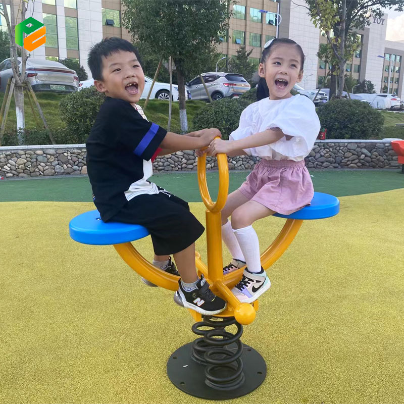 Our Outdoor Small Seesaw Rocker is purpose-built for kindergarten playgrounds, offering a perfect balance of safety and enjoyment. Crafted with precision from powder-coated galvanized steel, the sturdy frame ensures durability against outdoor elements. Complemented by LLDPE seats renowned for their strength and comfort, this seesaw rocker provides a secure and enjoyable experience for young adventurers. Designed to withstand vigorous play and inspire imagination, it promises endless hours of laughter and excitement, making it an essential addition to any kindergarten outdoor space.