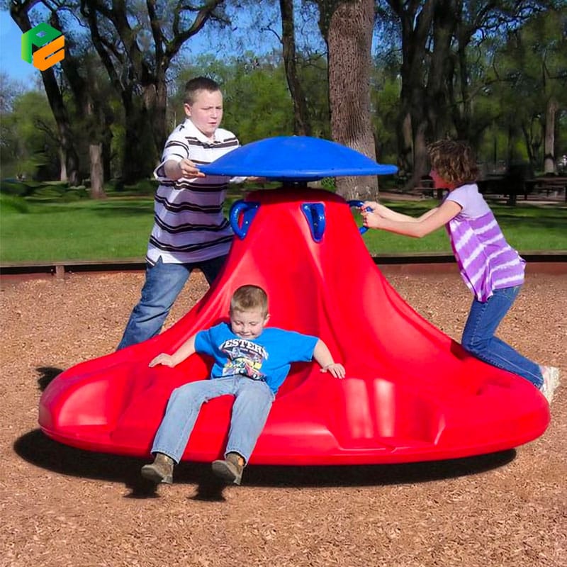 Deeply contoured molded seats for rider stability; Multiple internal grab points to maintain balance during rotation; Impact-resistant, UV-stabilized plastic construction; Fully enclosed central pillar to eliminate entrapment risks |