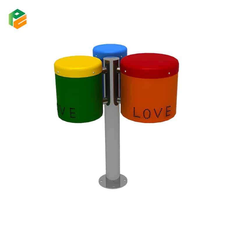 Technical Features Compact triple-drum cluster, single-post space-saving design, vandal-resistant fixings, and fade-resistant vibrant finish