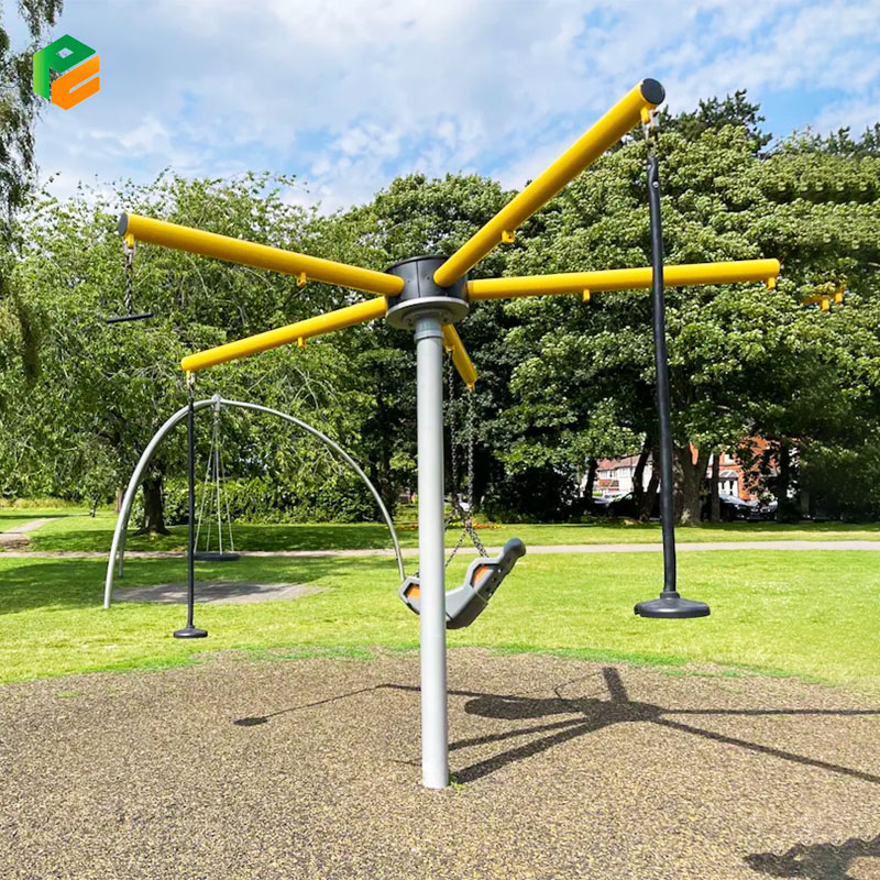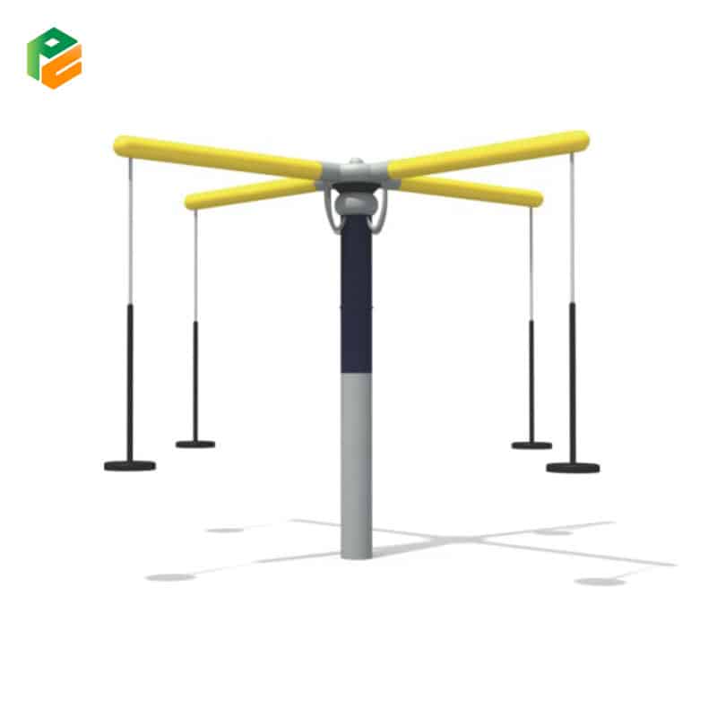 Welcome to the ultimate playground dilemma: Is it a swing, a climber, or perhaps a spinner? The answer lies in your imagination. Picture this: four safety seats encircling a sturdy central pole constructed of galvanized steel pipe. But what sets this play apparatus apart is its ingenious “rotate & bounce mechanism,” a marvel of engineering designed to unleash boundless fun for your children and their friends. With each rotation, laughter fills the air as they bounce and spin together, creating memories that will last a lifetime.