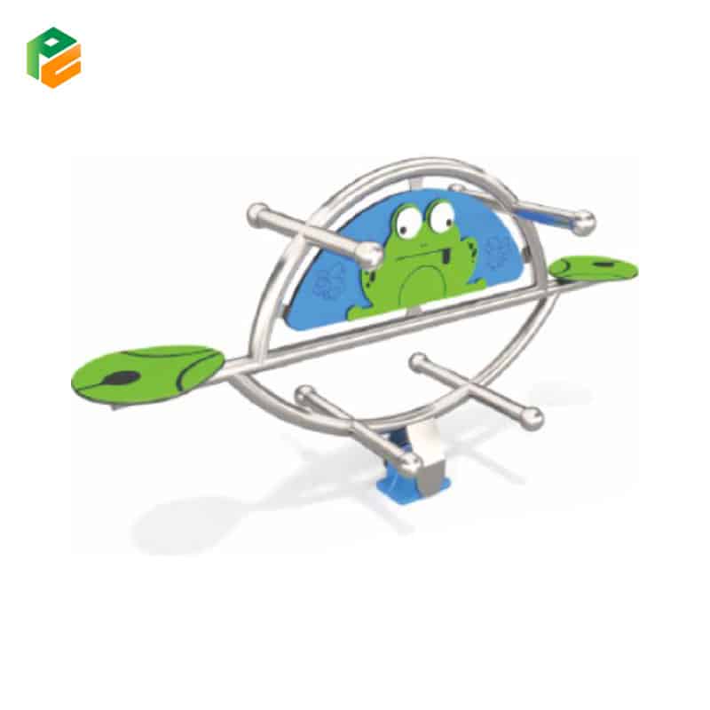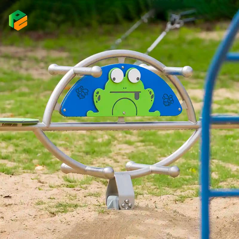 Introducing our two-person heavy duty seesaw featuring an adorable frog figure, crafted for endless playground enjoyment. Constructed with resilient powder-coated galvanized steel, the robust structure guarantees both stability and safety during play. Each seat, fashioned from durable HDPE material, ensures comfort and security for two riders. With its captivating frog-inspired design, this seesaw infuses playtime with imagination and excitement, promising memorable adventures for young explorers. Perfect for fostering collaboration and outdoor fun, it’s an essential addition to any playground or backyard oasis.
