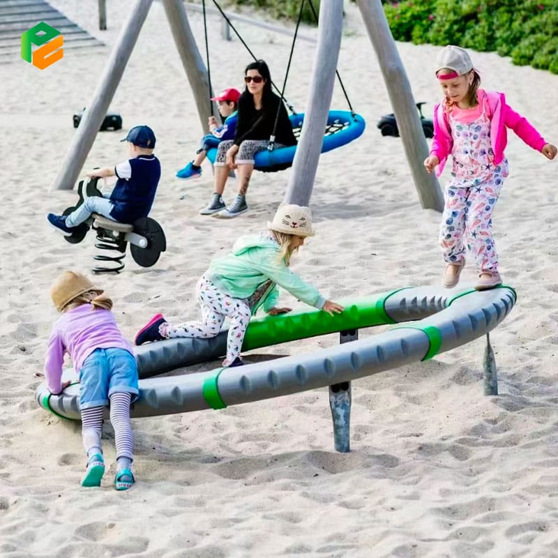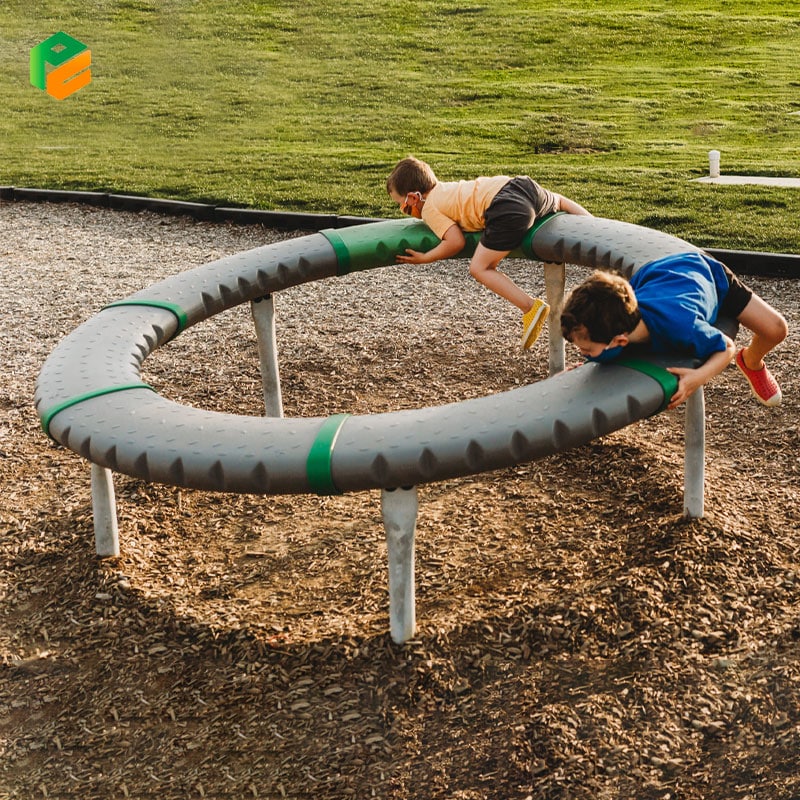 Aggressive anti-slip texture on the ring surface for secure footing; Slanted design allows for varied difficulty and self-regulated speed; Low-profile height (60cm) to minimize fall risks; Fully enclosed mechanical parts to prevent entrapment |